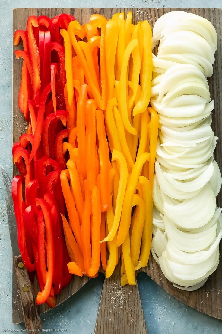 Small tray of various types of bell peppers soaked in vodka drizzled with honey.