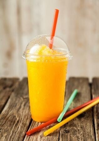 Side order of tray with ice cubes in plastic container or 10 cups of caffeinated soda. If no caffeine assortment of ten cups with lids of gingerale sodas.